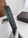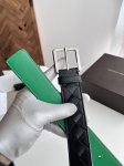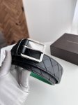Bv New Men's Belt Handmade Large Grid Intrecciato Piccolo Woven Italian Calfskin with Slightly Retro Silver Square Octagonal Pin Buckle Belt Width 3.5Cm Color: Black Parrot Green