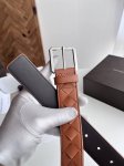 Bv New Men's Belt Handmade Large Grid Intrecciato Piccolo Woven Italian Calfskin with Slightly Retro Silver Square Octagonal Pin Buckle Belt Width 3.5Cm Color: Khaki Brown