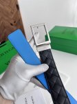 Bv New Men's Braided Belt, Double-sided, Handmade Intreccio Large Grid Braided Double-sided Italian Calfskin Leather with Vintage Silver Rotatable Square Buckle, Front Marking, Width 35mm. Colors: Black, Medium Blue DDD