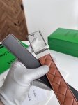 Bv New Men's Braided Belt, Double-sided, Handmade Intreccio Large Grid Braided Double-sided Italian Calfskin Leather with Vintage Silver Rotatable Square Buckle, Front Marking, Width 35mm. Colors: Tan, Coffee DDD