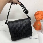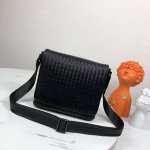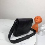 Bv woven messenger bag, a 2025 hot-selling item, is made entirely by hand. The soft imported waxed calfskin trim gives the square silhouette a unique charm. The low-key and practical leather becomes more shiny with use. Model: 9958#, Color: Black, Specifications: 26-22-8cm.