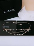 Ch Nel chain letter black leather waist chain The chain splicing design is full