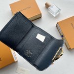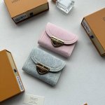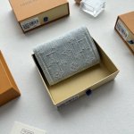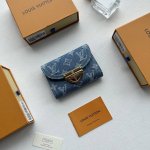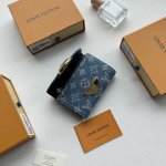 Color: Grayish-Pink Blue Size: 12X9.5X1.5 "Portefeuille Victorine" is made of stonewashed monogram denim canvas, creating a casual atmosphere. The flap features the Maison's signature gold-tone latch, which complements the stitching. The practical interior features a bill pocket, a zippered coin purse, and six card slots.