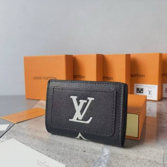 Colors: Black, White, and Gray Size: 11 x 8.5 The "Portefeuille Claire" has been updated with soft Monogram Unplant leather. The beautifully textured cowhide leather features a striking two-tone embossed Monogram pattern. This compact wallet boasts a variety of practical features, including a bill compartment, a zippered coin pocket, and six card slots.