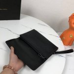 comes with a box. This woven clutch is made of imported waxed calfskin, featuring top-quality workmanship. Its slim and lightweight design features a carefully designed interior with a parallel zipper at the top and a foldable handle. Model: 8867-6#, color: black, dimensions: 26 x 18 x 3 cm.