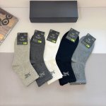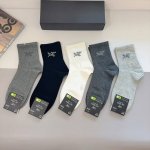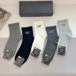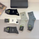 Comes with packaging, 5 pairs per box. Arc Teryx Fall/Winter New Men's Mid-Calf Socks, High-Quality Pure Cotton Fabric, Outshines Ordinary Products on the Market, Classic Logo Pattern, Trendy Socks, Must-Have for Fashionistas, Super Easy to Match.