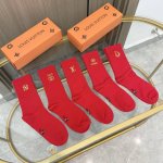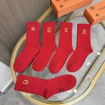 Comes with packaging. One box contains five pairs of European and American brand red and vibrant New Year socks, same style as the official website, mid-length socks with letter embroidery! Ribbed cuffs, embroidered brand abbreviation letters, Instagram decoration, same style as in department stores, high-end street style, a must-have for trendsetters, super easy to match.