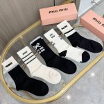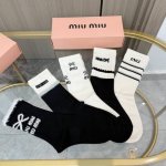 Comes with packaging. One box contains four pairs of Miu Miu high-quality, super popular cashmere knee-high socks. These Miu Miu knee-high socks feature embroidered lettering, a style currently available on the official Miu Miu website. Recommended by Instagram celebrities and influencers, these socks are extremely popular. Made of pure cotton, they are lightweight, soft, and breathable, suitable for all seasons. A must-have for European and American high-end street style.