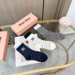 Comes with packaging, one box contains three pairs of Miu Miu high-quality super popular online celebrity socks, Miu brand official website synchronized, adorned with lettering mid-calf socks, recommended by Instagram celebrities and influencers, extremely popular, made of pure cotton, lightweight, soft and breathable, suitable for all seasons, a must-have for European and American high-end street style.