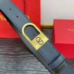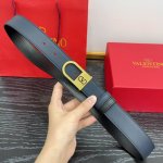 Cowhide leather belt, vintage brass distressed metal buckle, adorned with enamel Vlogo Signature details. Width: 3.0cm.
