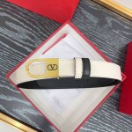 Cowhide leather belt, vintage brass distressed metal buckle, adorned with enamel Vlogo Signature details. Width: 3.0cm.