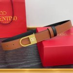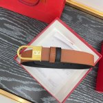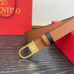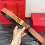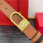 Cowhide leather belt, vintage brass distressed metal buckle, adorned with enamel Vlogo Signature details. Width: 3.0cm.