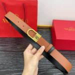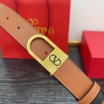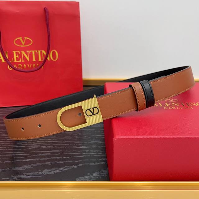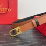 Cowhide leather belt, vintage brass distressed metal buckle, adorned with enamel Vlogo Signature details. Width: 3.0cm.