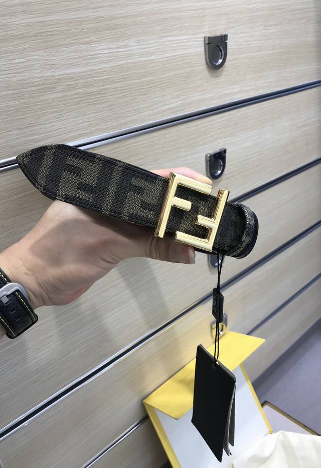 Delivery counter packaging Punch needle width 35 Mm, size 75 80 85 90 95 100 Euro original jacquard Ff brown fabric belt, pure hand-wrapped edge, with original ruthenium palladium electroplated F buckle, support Nfc original leather customization, impeccable texture, outstanding details, high-definition real shot, genuine goods, quality assurance, non-market currency!
