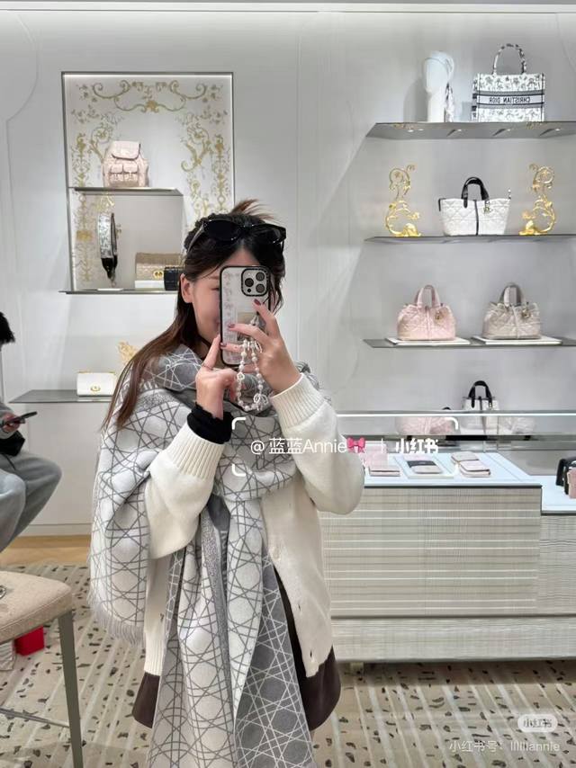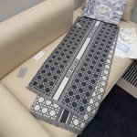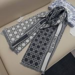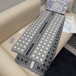 Dior Cannage Scarf Ddd *45cm. 57% Cashmere. 43% Virgin Wool Ddd This Dior Cannage scarf is a new arrival this season, reinterpreting the classic pattern with a stylish and classic look. Crafted from a cashmere and virgin wool blend, it features fringed trim and is embellished with contrasting "Christian Dior" logo jacquard stripes for added elegance. DDD