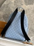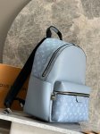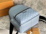 This Discovery Small Backpack blends Monogram canvas and Taga cowhide leather in a refreshing hue that nods to the spring sky. A spacious front pocket showcases functionality, while the ample interior features an elegant fabric lining and multiple patch pockets. A top handle provides an additional carry option.