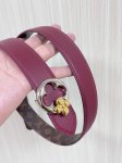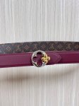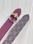 Flowergram Reversible Belt: This belt combines Monogram canvas and Monogram embossed leather for a dual-style look. A delicate, jewel-like buckle pays homage to the Monogram flower, adding an elegant touch to any outfit. 3.0 Burgundy Lychee Grain Double-Pointed Round Buckle with Gold Flower.