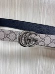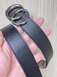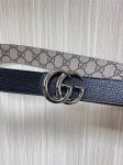 Gg Marmont series buckle double-sided belt, one side embellished with the brand's signature pattern, the other side is made of neutral leather. This double-sided belt is made of leather and Gg letter pattern coated fabric, with the signature double G buckle, 3.5 black anti-snag pigskin texture