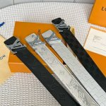 L0Uis Vuitt0N This season's new men's belt, 40mm wide, made from double-sided imported calfskin with embossed brand logo and classic hollow hardware. It can be worn on both sides and is perfect for the calm and understated man.