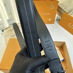 L0Uis Vuitt0N This season's new original belt, 35mm wide, double-sided imported calfskin, unique tail hardware design, motorcycle stitching on the belt body, smooth and neat white lines that contrast sharply with the black leather, highlighting the ultimate pursuit of detail and craftsmanship. A low-key and versatile style.