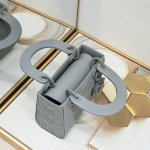 This Lady handbag embodies a profound insight into elegance and beauty. Elegant and timeless, it is meticulously crafted from black calfskin leather, featuring a diamond-patterned interpretation of the iconic cannage stitching. A tonal metal charm adds an elegant touch. This miniature model features a detachable chain shoulder strap for hand, shoulder, or crossbody wear.
