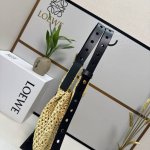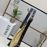 This soft and lightweight handbag is made of hand-woven raffia palm leaves and can be carried on the shoulder or by hand. The adjustable handles have a magnetic closure and an internal cowhide slip pocket. Loe*We gold stamping