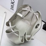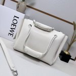 . The Madrid features a soft, structured trapezoidal shape with gussets, adjustable handles, and a Pebble closure. This larger version is crafted from soft cowhide leather.