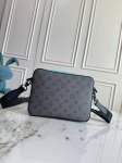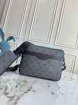 M11648 This new version of the 11645 men's three-piece messenger bag series, the Trio Messenger Bag, is crafted from Monogram Eclipse and Monogram Eclipse Reverse canvas. The signature tonal pattern highlights the lines of this versatile, modular design. In addition to its traditional crossbody functionality, it features a removable zippered pocket and a coin purse attached to the strap. 25 x 18.5 x 7 cm.