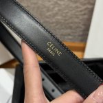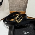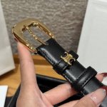 ). This belt features a cowhide leather lining, gold-tone finish, round buckle, and a Triomphe metal ring surrounding the first loop. Width: 25mm.