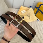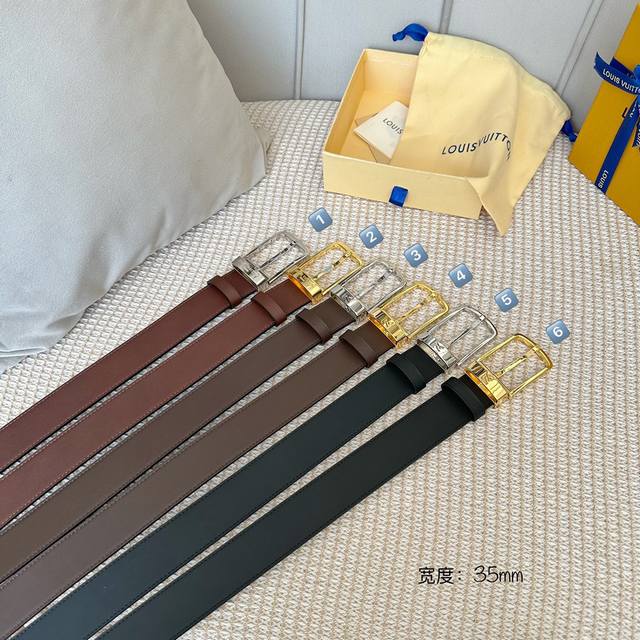 Men's Classic Premium Casual Belt, 35mm Width, Brand Exclusive Plain Togo Texture Calfskin with Calfskin Sole, Newly Molded Premium Pin Buckle Design, Three Colors Available DDD