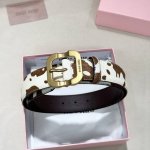 Metal buckle. Belt loops adorned with a laser-engraved logo. Horsehair leather belt with a super-soft, plush feel. Belt loops with the Miu Miu logo. Top-grain cowhide belt, 3.4cm. DDD