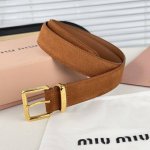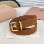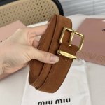 Metal buckle. Belt loops with laser engraved logo. This suede leather belt is simple and elegant. The belt loops feature the Miu Miu logo. Suede belt 3.4Cm