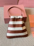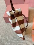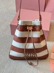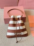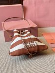 Miu Miu's summer straw mini bag is here! Girls, Miu Miu's new summer straw mini bag is absolutely stunning! Available in brown and white stripes, vibrant yellow, and calming brown. The straw body of the bag exudes a summery vibe. Embellished with the classic brand logo, it's both refined and eye-catching. The drawstring design adds a casual touch, and paired with a leather shoulder strap, it's incredibly stylish. Whether you're on vacation or out and about, this bag will easily steal the show and add a touch of class to your outfit. Size 25cm