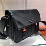 New 2Vd768B Original goods This nylon flap handbag is decorated with classic Saffiano leather trim, equipped with two side buckles and decorated with the iconic triangular metal logo, showing a fashionable design style. It is made of imported nylon and Saffiano leather, two front pockets, one of which has a zipper, a back zipper pocket, two internal mobile phone pockets, and an adjustable nylon logo jacquard shoulder strap. It is a classic and fashionable messenger bag that men love. Length 32X height 24X bottom 12Cm