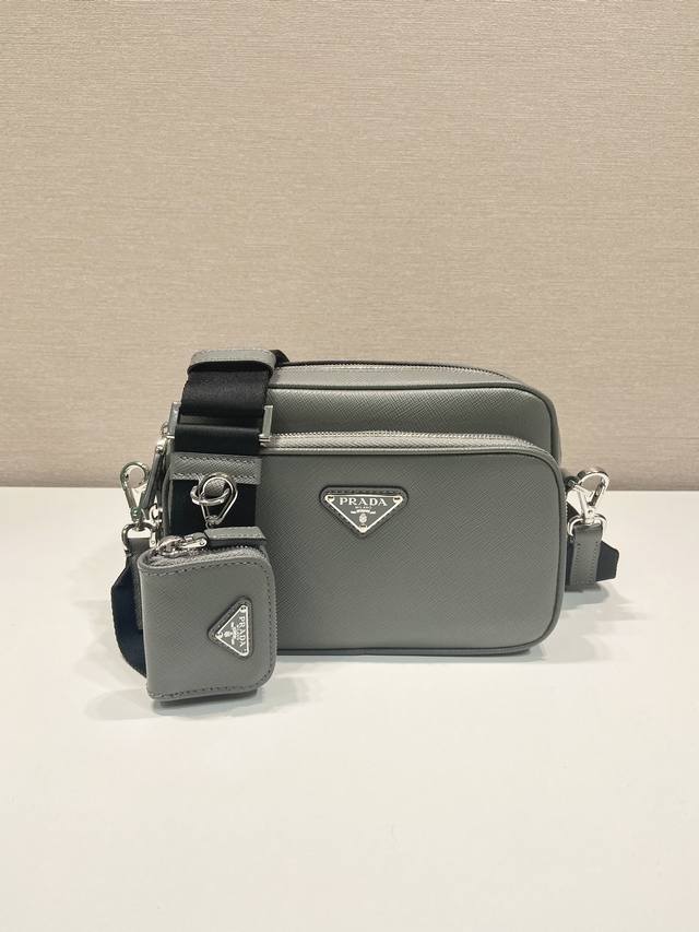 This shoulder bag is crafted from saffiano leather, its simple lines showcasing a striking style. The iconic saffiano leather material is synonymous with luxury and a symbol of traditional Italian leather craftsmanship. It comes with a detachable leather pouch and enameled triangle logo, along with a detachable and adjustable nylon shoulder strap, adding a touch of simplicity and elegance. Hurry and get yours!