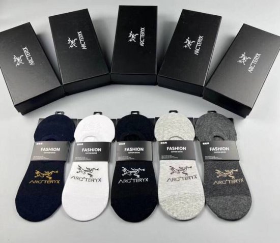 New Arc'teryx men's invisible socks, made of pure cotton, featuring the classic Arc'teryx logo jacquard, breathable, sweat-absorbent, soft and comfortable, very nice on the feet, stylish business look, a top choice for gifting to superiors or elders. One box contains five pairs.