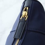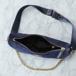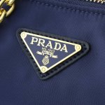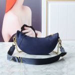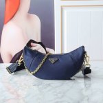This Re-Nylon handbag is crafted from recycled nylon fabric. Exquisite and versatile, it blends archival styling with practical contemporary style. Its half-moon silhouette features a detachable sporty shoulder strap and elegant chain handles, allowing for versatile carry options. Perfect for crossbody, underarm, or hand-carrying, it's perfect!