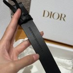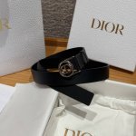 New Dior belt. This belt is crafted from smooth black cowhide leather and features a metal-coated brass buckle. Its classic design subtly accentuates the waistline, exuding elegance. It can be paired with jeans or a dress. Width: 25mm.