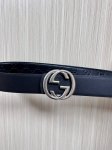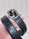 New for the season, this eye-catching men's belt is part of the 2026 Early Spring collection. The belt buckle features a pin for easy flipping of the interlocking double-G buckle. The palladium-toned finish provides a shimmering effect, adding a unique charm to the entire design. Product Details: One side is black Gg-print embossed leather, the other side is black leather. Palladium-toned hardware. Detachable interlocking double-G buckle. Width: 4.0mm embossed hook.
