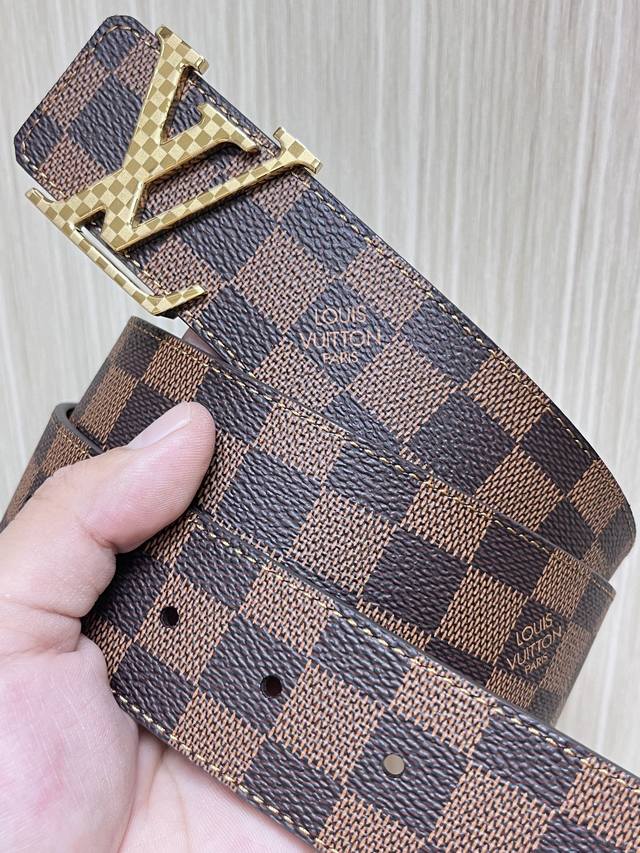 New style of the season, 4.0 one side of canvas printed with checkerboard pattern, one side of calfskin plain leather, with fine plaid buckle real shot, official website synchronized