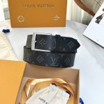 Original Packaging 1.0 DDD L0Uis Vuitt0N New Season Men's Original Single-Piece Belt, 40mm Width, Custom Classic Canvas Black Floral Fabric Lined with Calfskin Needle Texture, Newly Molded Pin Buckle Hardware. Understated and Versatile Style DDD