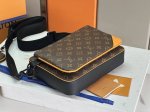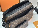 Premium original M46694 yellow leather with monogram Trio messenger bag crafted from Monogram Eclipse canvas and Monogram Eclipse Reverse canvas. The signature tonal pattern highlights the lines of this versatile, modular design. In addition to its traditional crossbody functionality, it also features a removable zippered pocket and a coin purse attached to the strap. Size: 25 x 18.5 x 7 cm