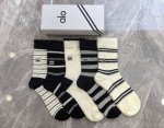 Alo New Double Needle Embroidery Mid-Length Slouch Socks! Five pairs per box, same style as in department stores, designer street style, a must-have for trendsetters, super easy to match.