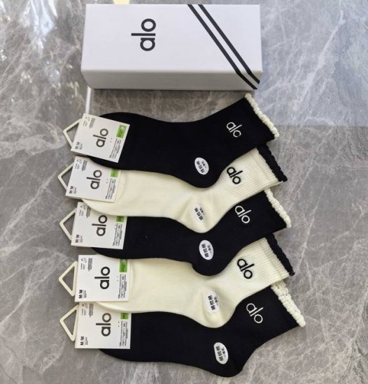 Alo New Embroidered Mid-Length Slouch Socks! Five pairs per box, same style as in department stores, designer street style, a must-have for trendsetters, super easy to match.