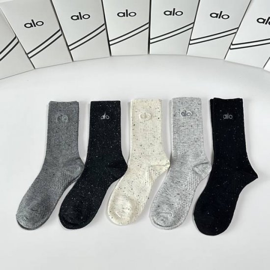 Special Packaging DDD Alo New Painted Embroidered Mid-Length Slouch Socks! Five pairs per box, same style as in department stores, designer street style, a must-have for trendsetters, super easy to match DDD