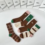 Special packaging for boutique items! DDD Alo New Double-Needle Embroidery Mid-Length Slouch Socks! Five pairs per box, boutique-quality socks, a must-have for trendsetters, super easy to match. DDD