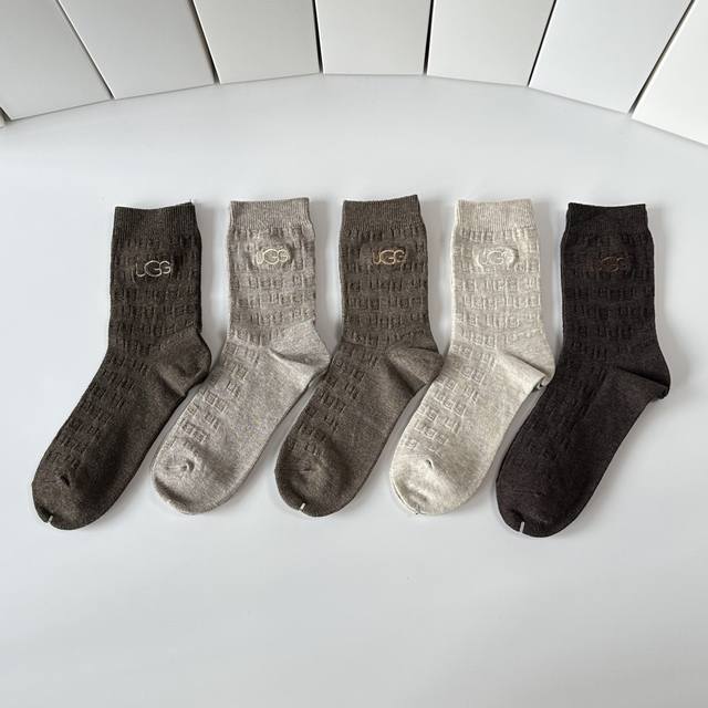 Special Packaging DDD Ugg New Cashmere Embroidered Mid-Length Slouch Socks! Five pairs per box, same style as in department stores, designer street style, a must-have for trendsetters, super easy to match DDD
