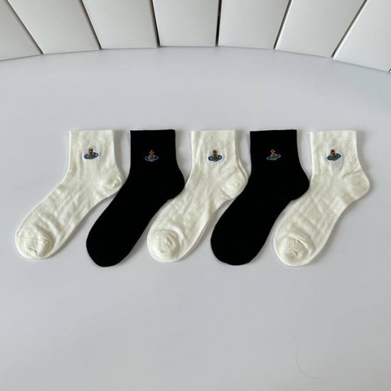 Special Packaging DDD Vivienne Westwood New Embroidered Classic Mid-Calf Slouch Socks! Five pairs per box, same style as in department stores, designer street style, a must-have for trendsetters, super easy to match. DDD