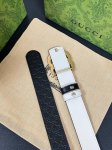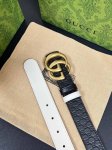 The Fall/Winter 2025 collection reinterprets the distinctive Gg Marmont series. This reversible narrow belt is crafted from Gg-printed embossed leather and other leather materials, adorned with a double-G buckle. Product Details: One side is black Gg-printed embossed leather, the other side is white leather. Light gold-toned hardware. Double-G buckle. Width: 3.0mm. Black embossed, white base. Hook.