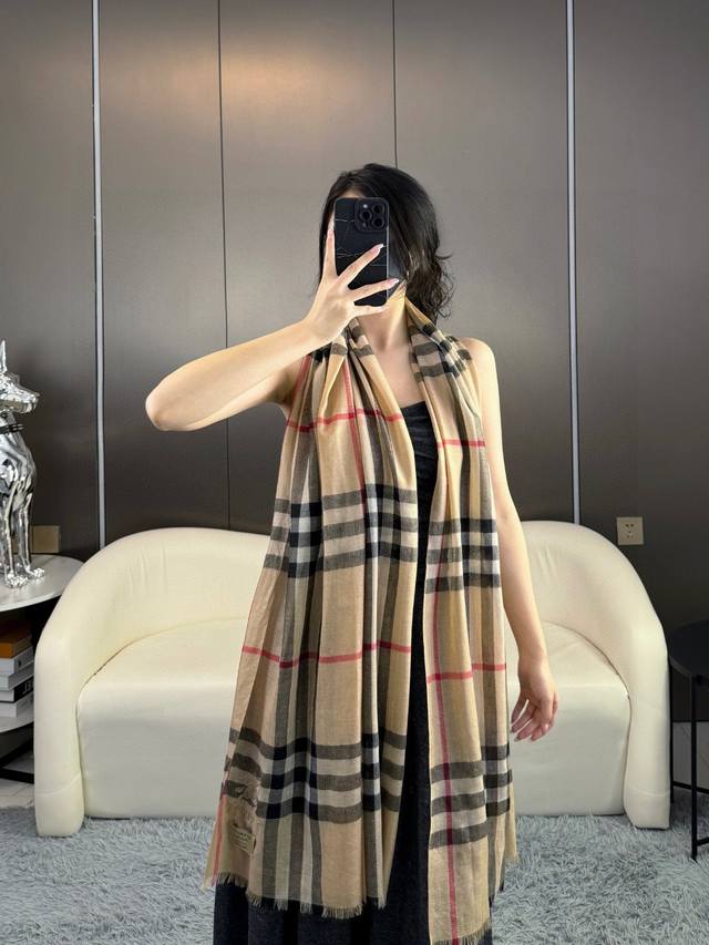 The hottest Burberry classic with the highly anticipated Warhorse logo has arrived! The latest concept from the finest young designers, featuring color-matching yarn dyeing and then yarn-dyed weaving, creates a new pattern. This scarf, along with the remaining accessories, was a long wait, taking three months to complete. This is the British plaid favored by the nobility, a symbol of identity and elegance. The plaid is specially hand-woven with scattered tassels. This is a rare and valuable item for shawls. Size: X200 Material: Cashmere